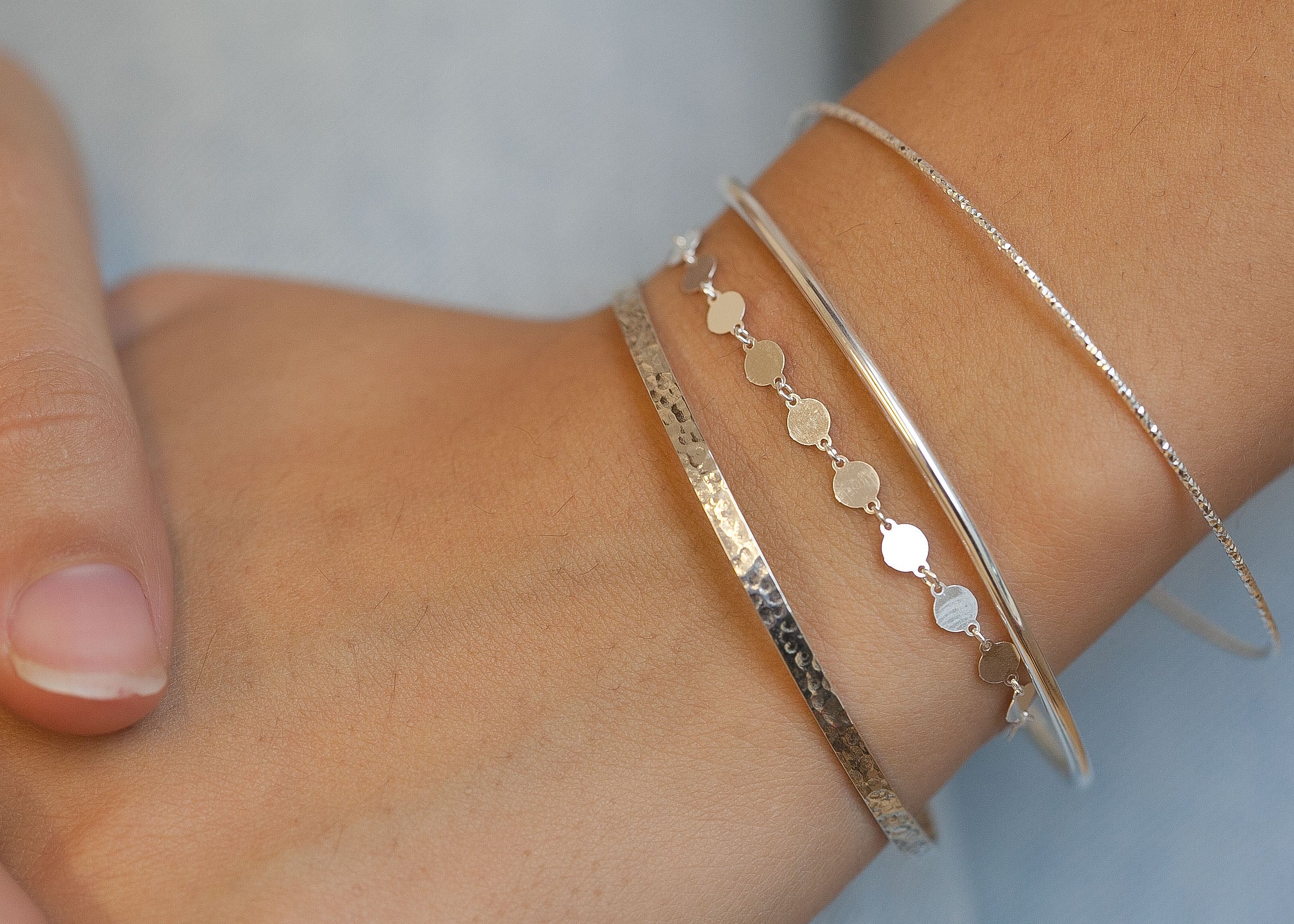 Très joli trio de joncs fins en argent massif 925 (poinçonné).