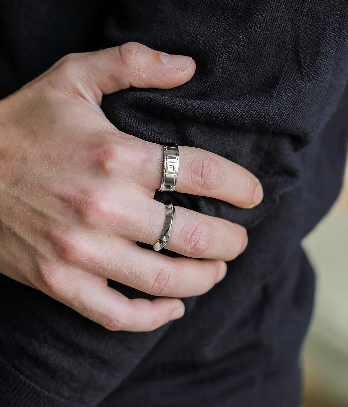 Bague en acier uni serti d’un carré sur lequel est se trouve un diamant naturel.Elle se mélange avec toutes les autres bagues de notre collection homme.