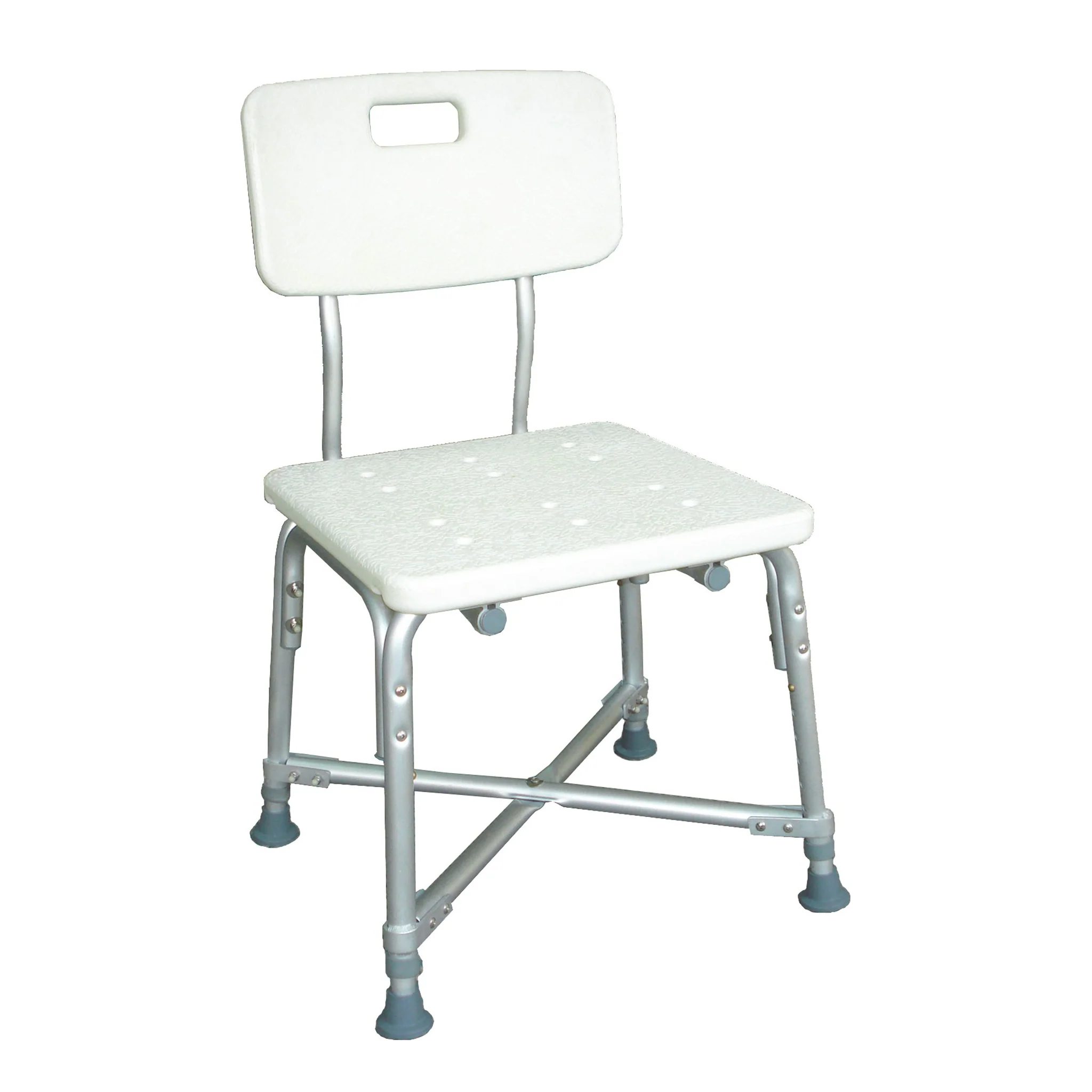 - Les pieds de cette chaise pour le bain bariatrique sont reliés ensemble avec des supports en forme de X. Ça permet d’avoir une meilleure durabilité et une stabilité accrue, par rapport à un banc pour douche ou de bain régulier, non adaptée pour le surplus de poids.