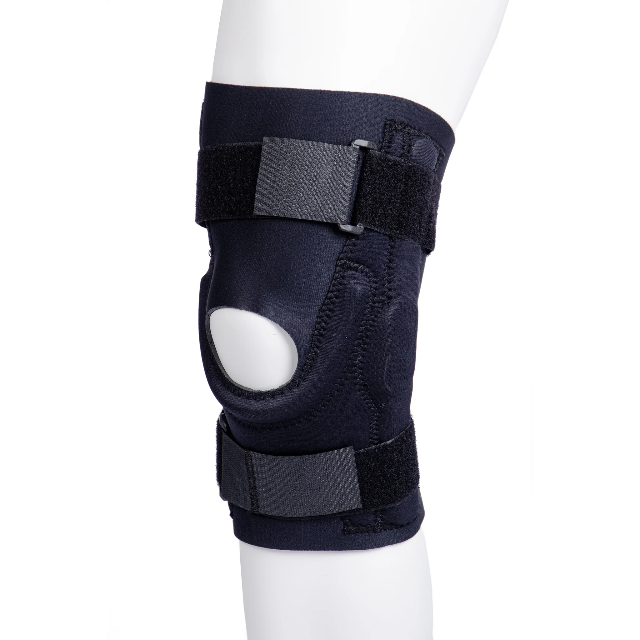 - Au niveau de la rotule, l’orthèse pour genou rotulienne a une ouverture complètement coussinée. Ceci permet d’agir comme support additionnel à la rotule, et à prévenir les irritations.