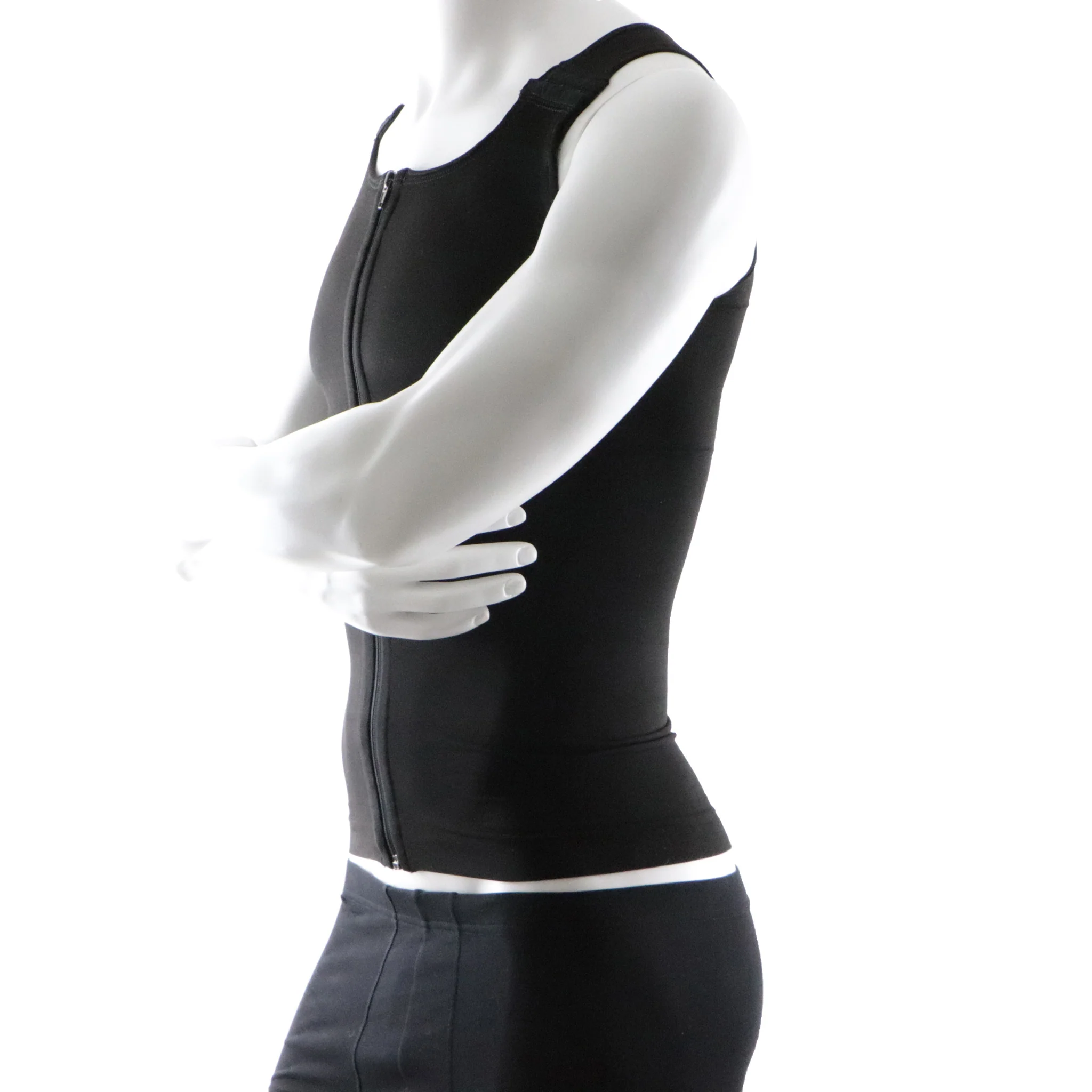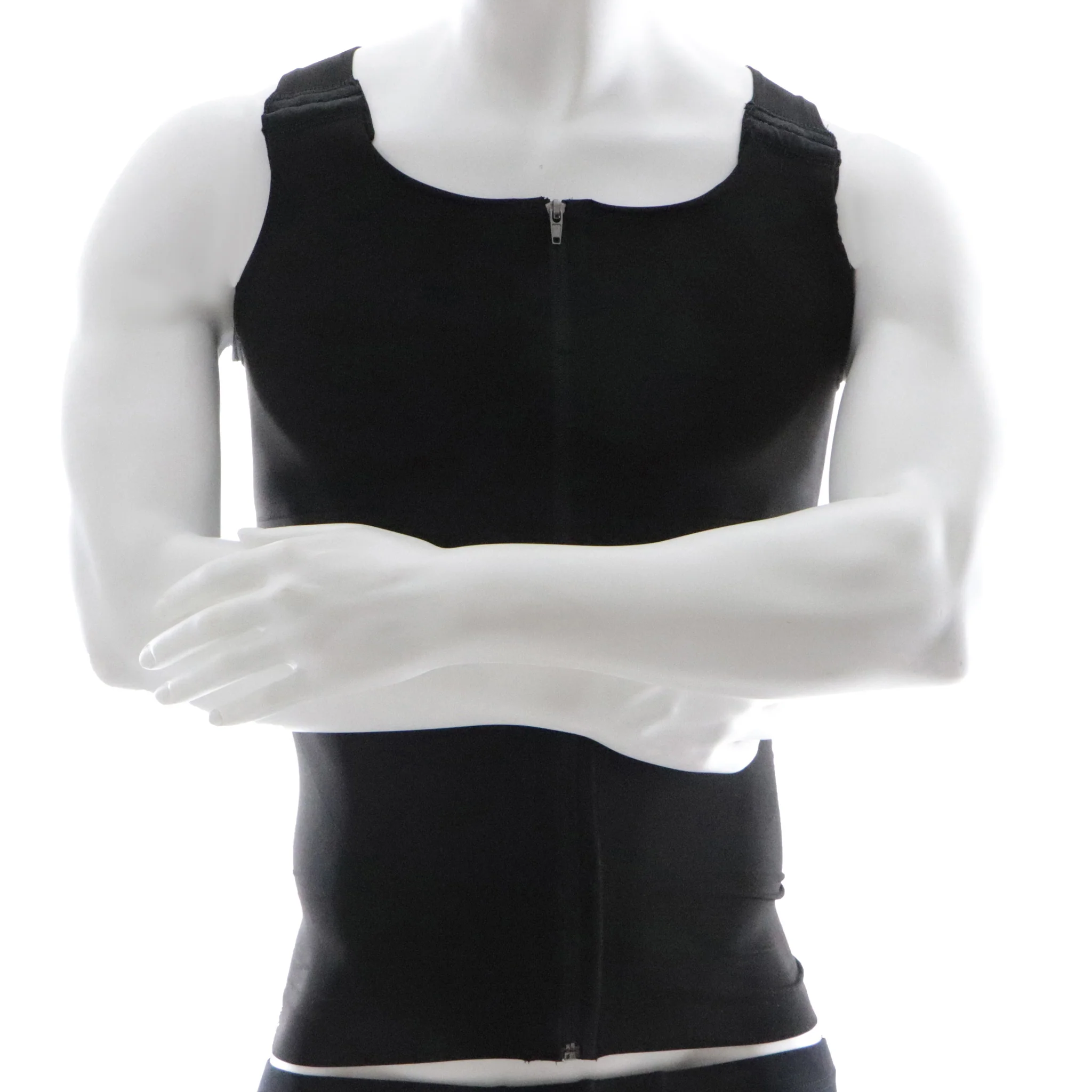 Le gilet post opératoire pour homme, sans manches, est fabriqué au Canada, d’un tissu de compression de grade médical.