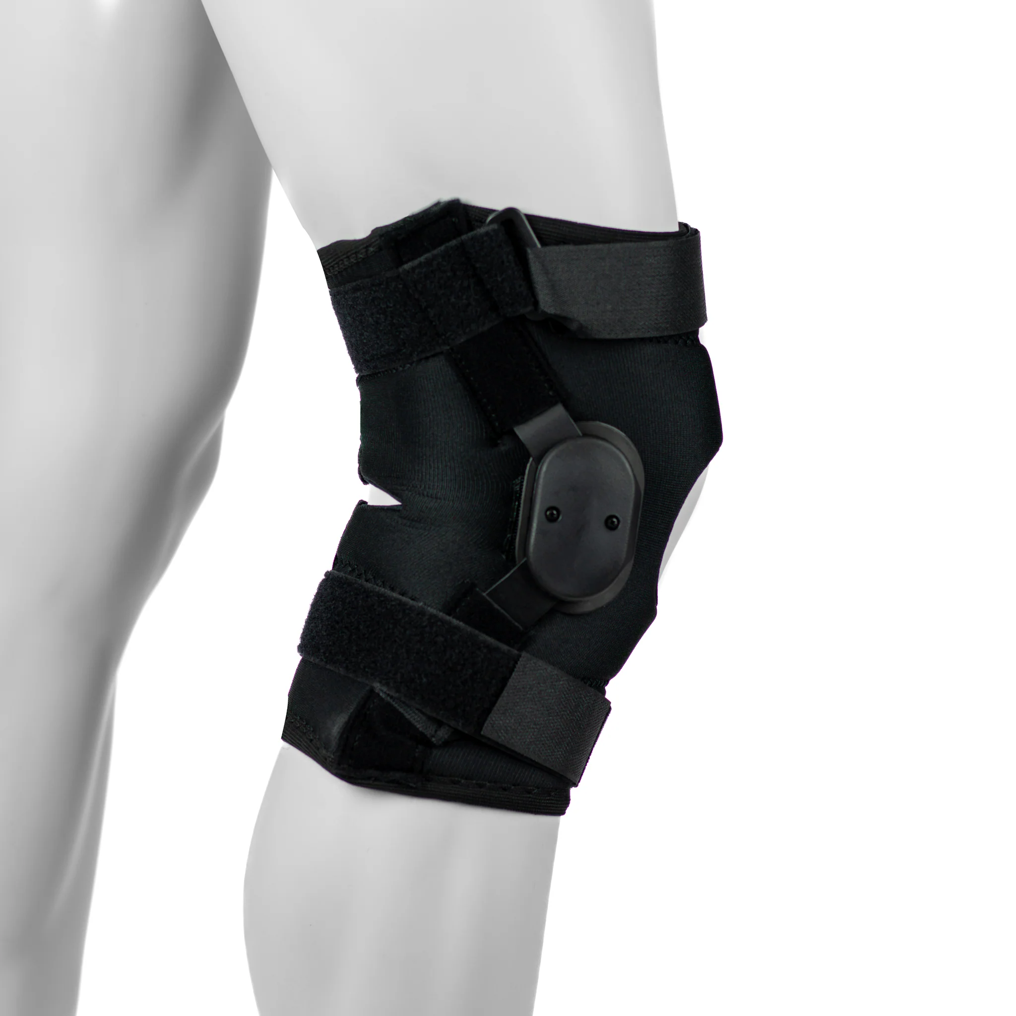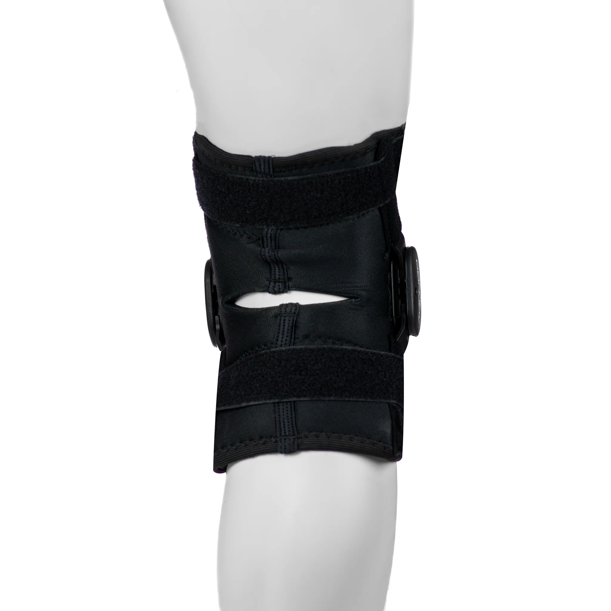 - Les baleines articulées en aluminium de cette orthèse pour genou sont amovibles.