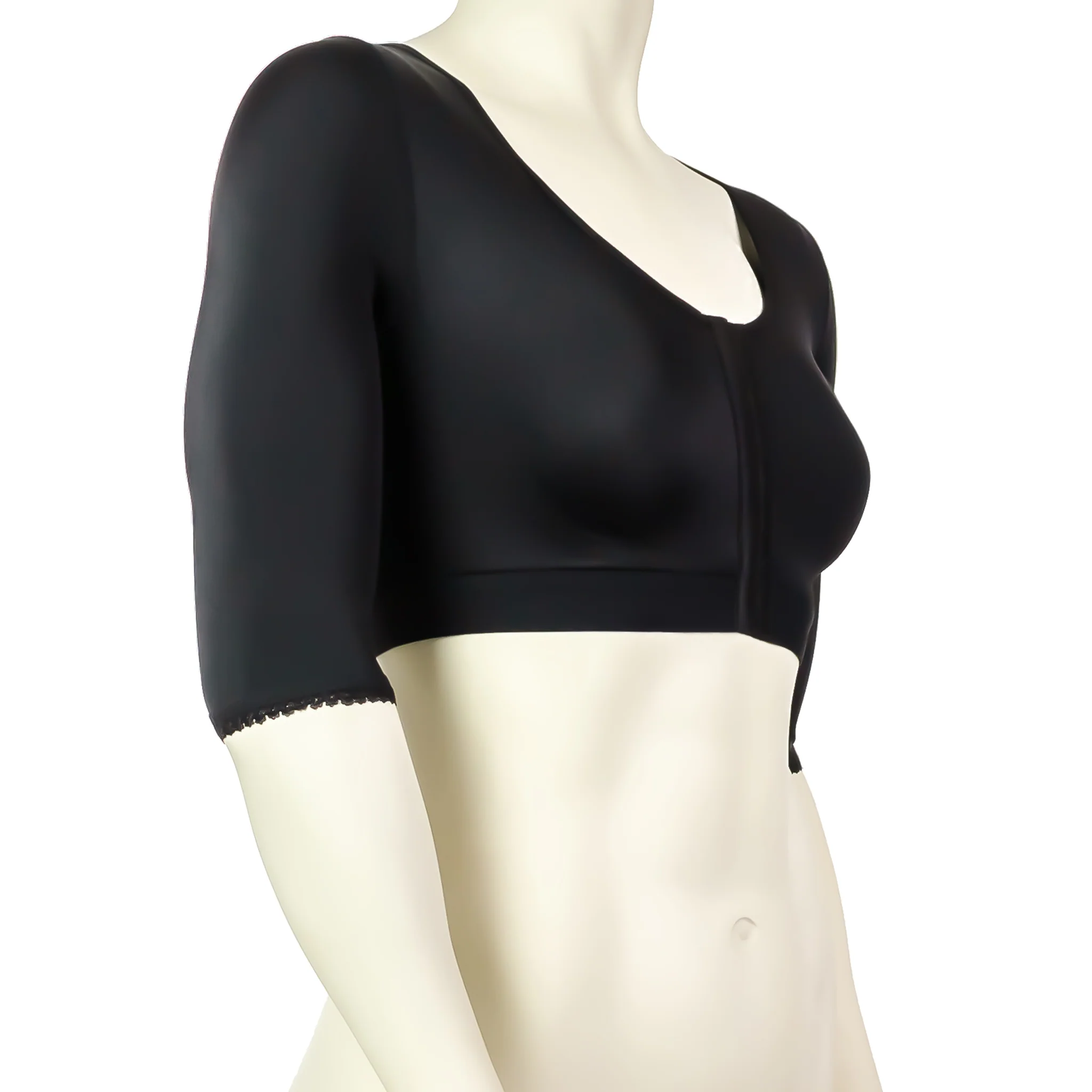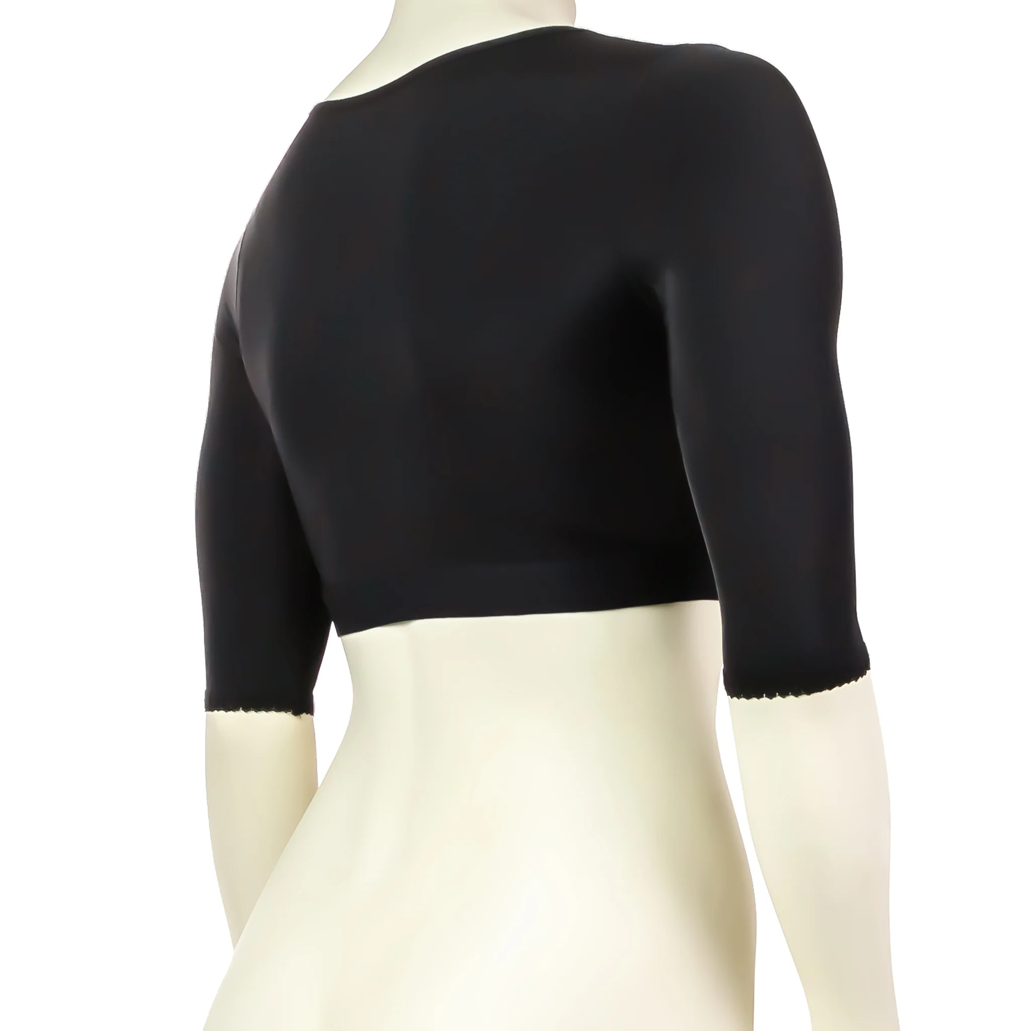 De plus, si nécessaire, les manches peuvent servir comme manchon de compression pour les bras, après brachioplastie ou liposuccion des bras.